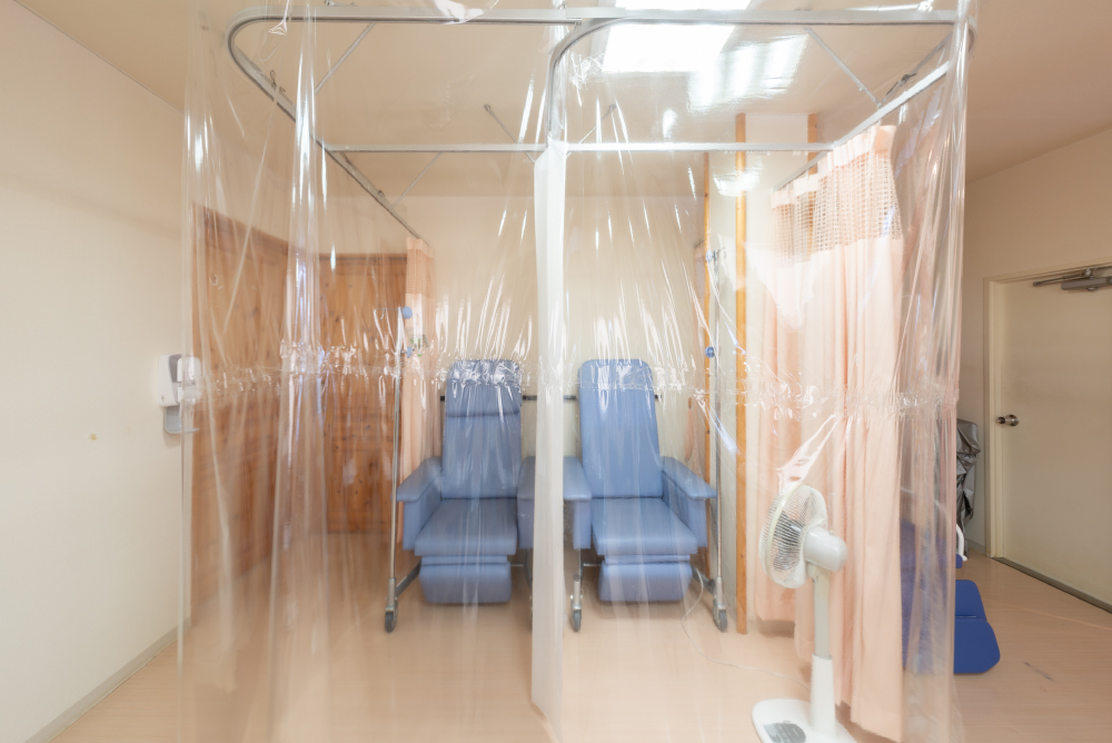 点滴用リクライニングチェアを2台用意しました。くつろいだ状態で点滴治療を受けることが出来ます。チェアの周りはカーテンで囲います。