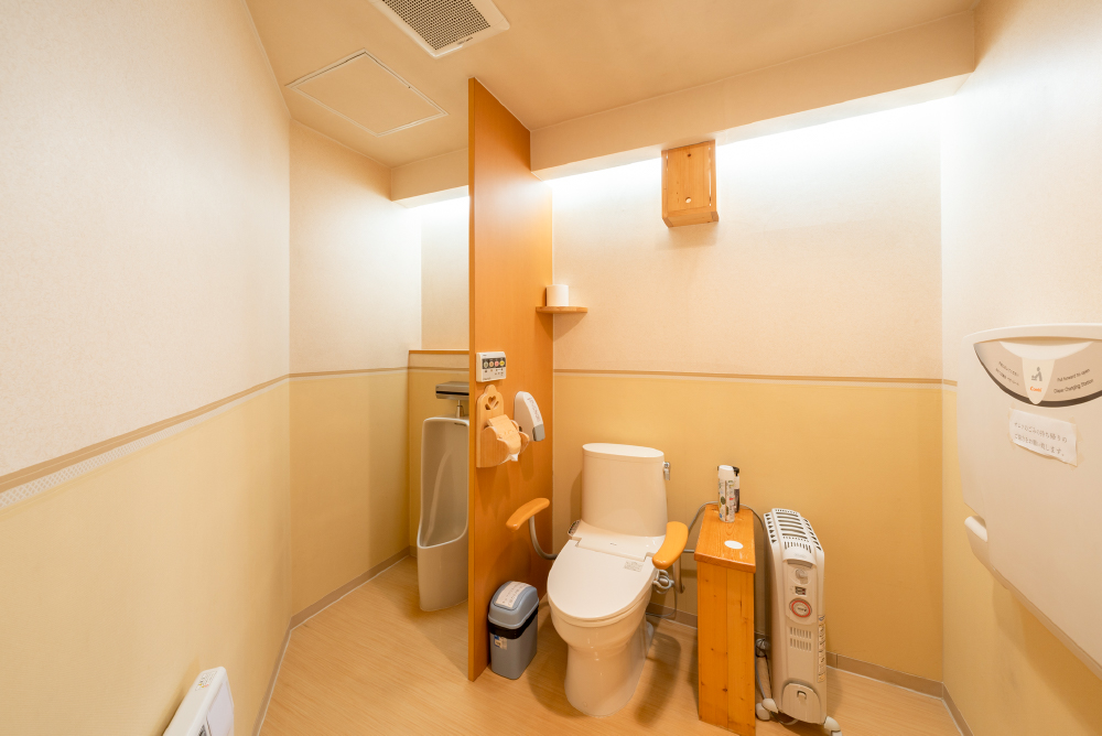トイレにはベビーシートが付いています。赤ちゃんのオムツ替えができます。